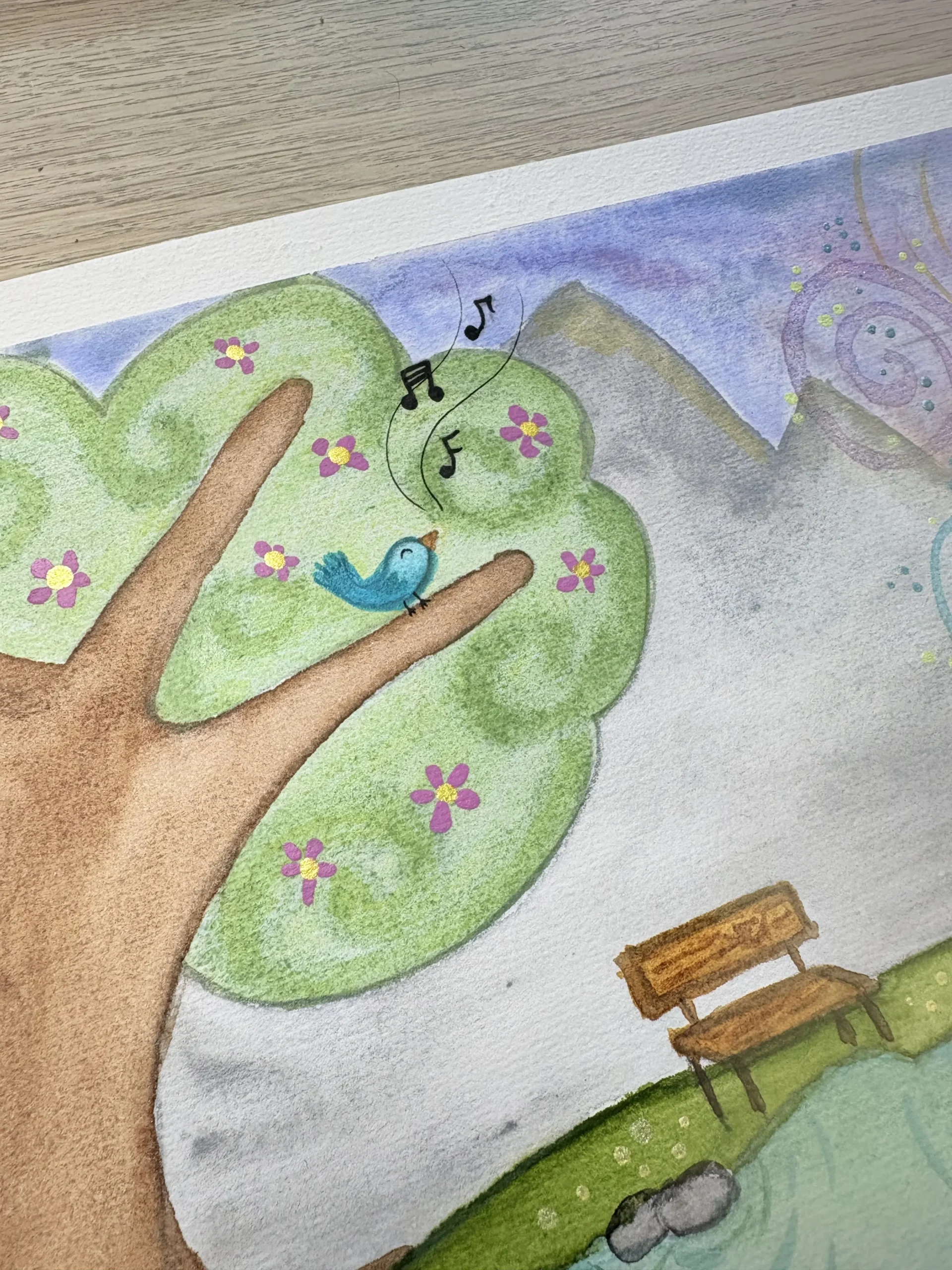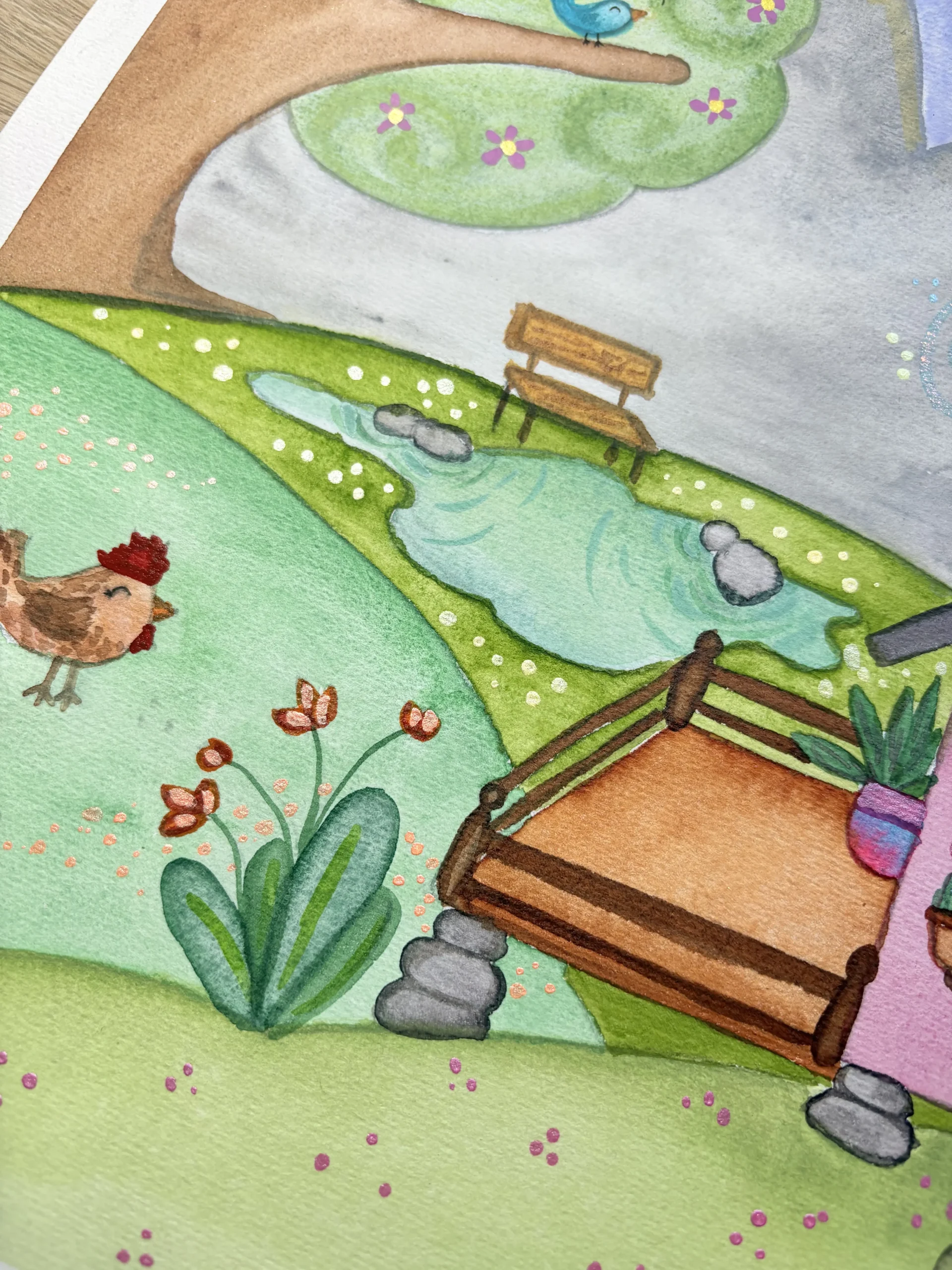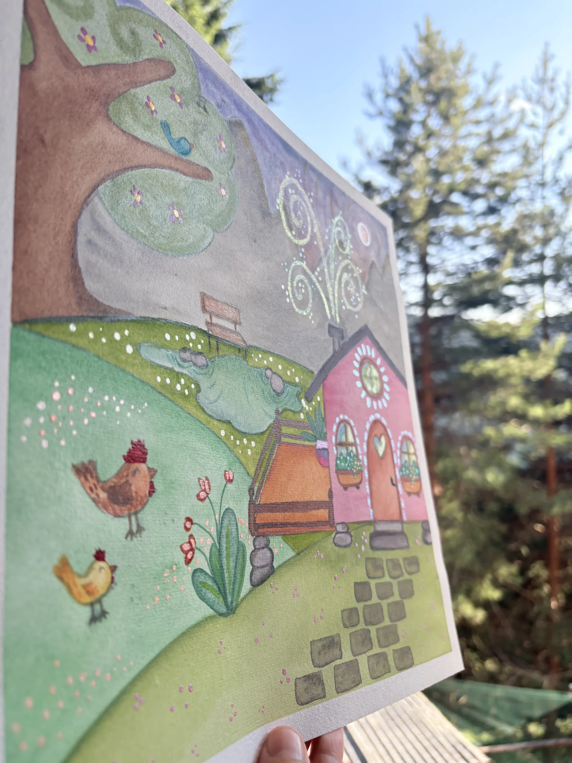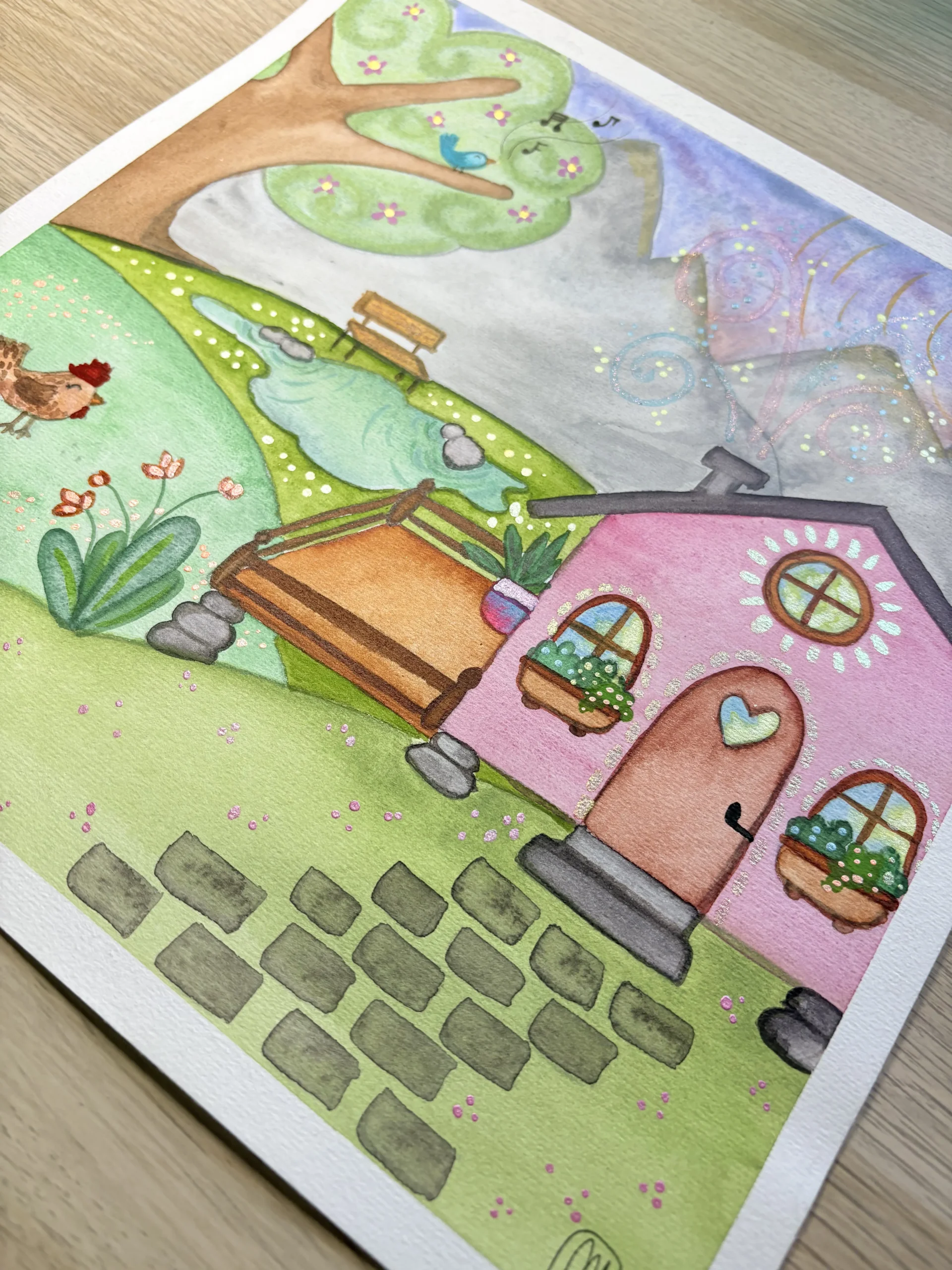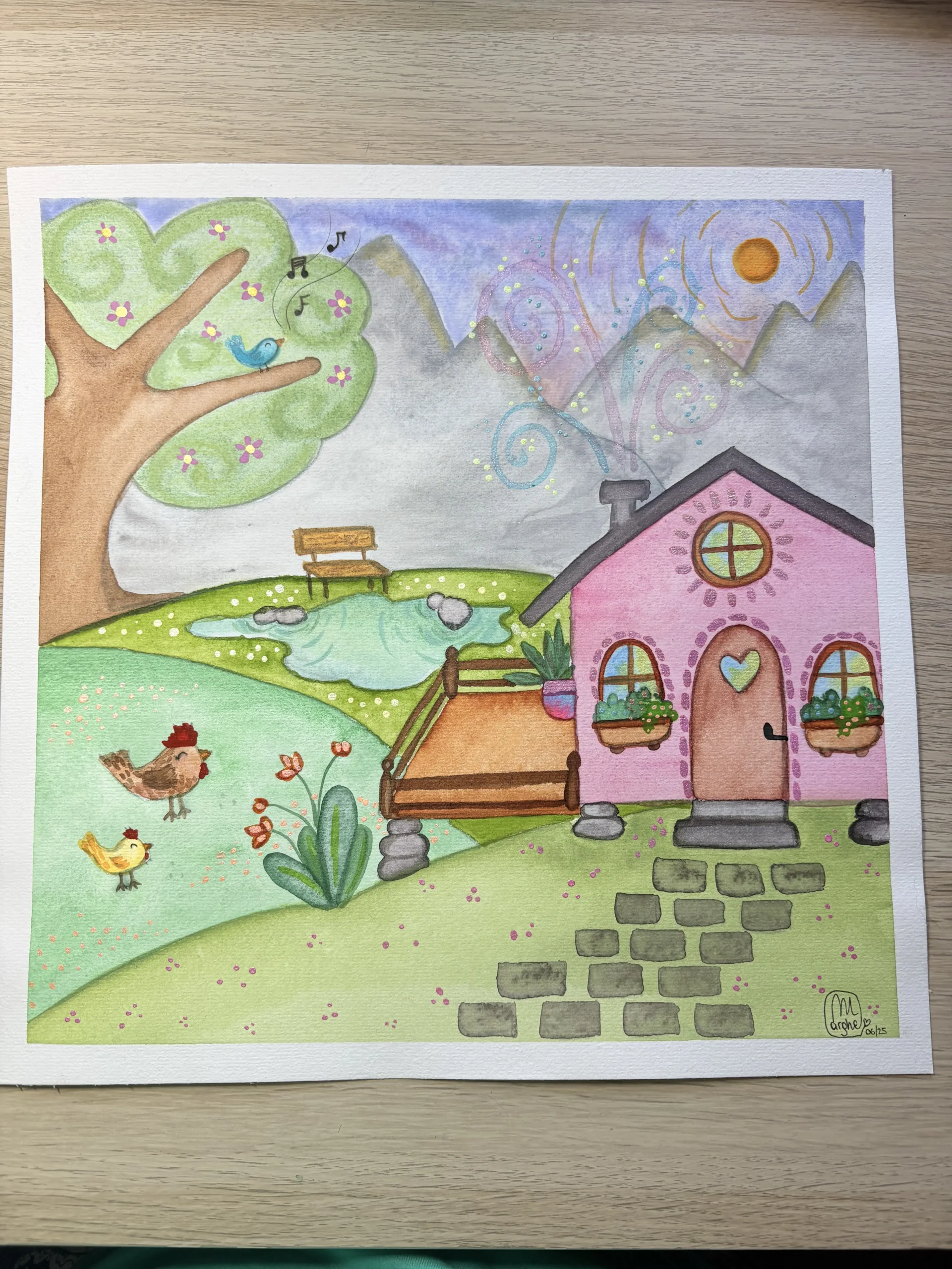 Dipinto originale ad acquerello, carta 100% cotone e colori Schminke, misura 30×30. giugno 2025
